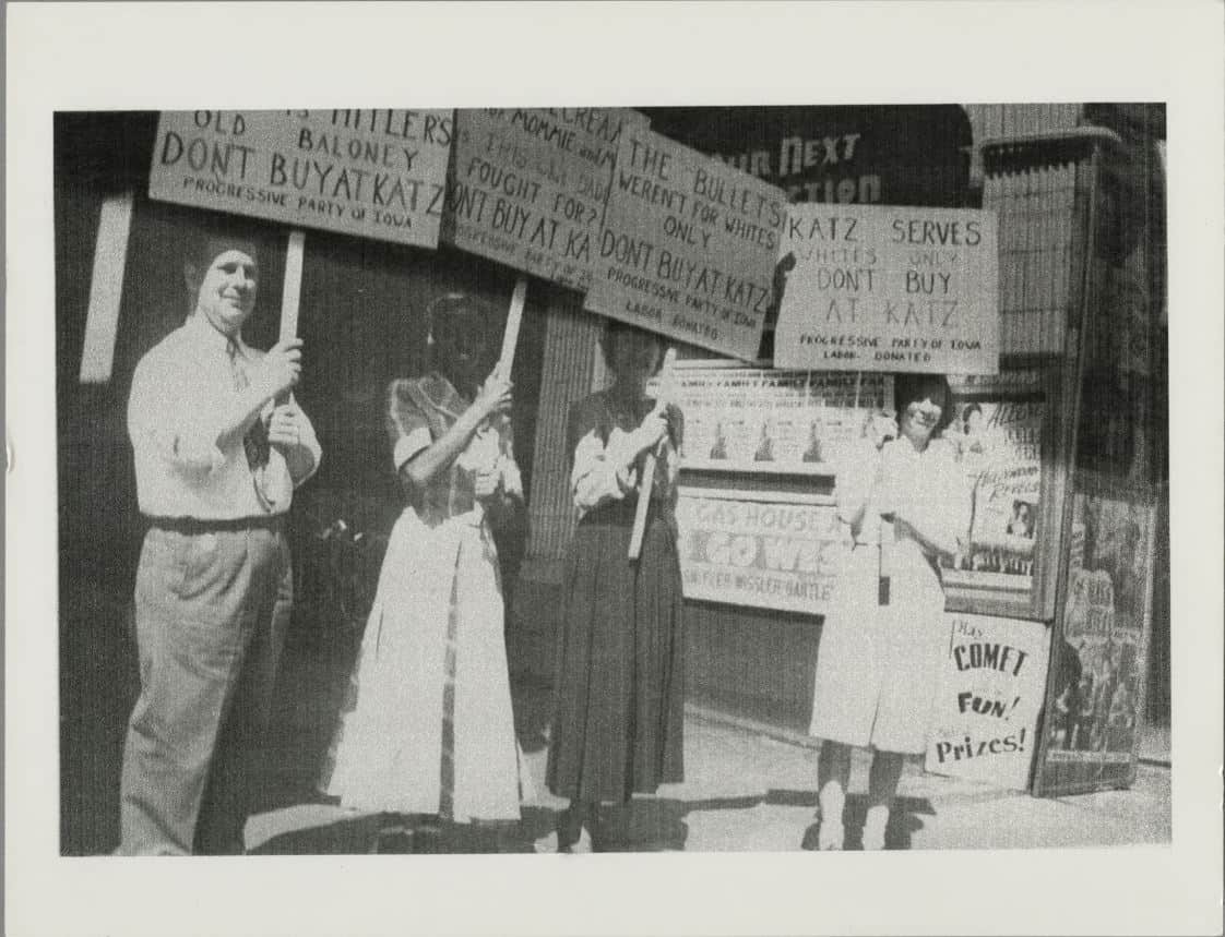 The image is of a protest organized by Edna Griffin after she was denied service at Katz Drug Store in downtown Des Moines, Iowa on July 7, 1948. Following the discrimination, Edna Griffin and the NAACP began a campaign to counter this type of discriminat...